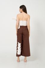 Top em tecido encorpado com toque macio. Modelagem orgânica com shape ajustado. Decote reto. Alças finas. Sobreposição frontal estruturada com barbatanas. Peça assimétrica. Fechamento posterior em zíper de metal.