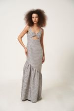 36 - Busto: 76 cm - Cintura: 72 cm - Comprimento: 155 cm.