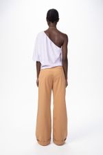 O top Leia CRIS BARROS remonta o charme dos looks vintage sem perder o ar de modernidade. Feito de Jaipur, nosso linho de caimento leve e arrojado. Possui shape solto e um ombro só, com manga como continuação do corpo. Conta com forro com elástico até altura da cintura, como bustiê interno.