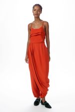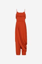 O macacão Capella CRIS BARROS é fashionista e elegante. De Avalon, nosso tecido clássico, encorpado e fluido, perfeito para alfaiataria. Possui decote V com detalhe drapeado sobreposto, alças finas, shape justo, calça cenoura com saia sobreposta e fechamento por zíper invisível lateral.