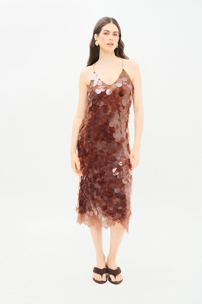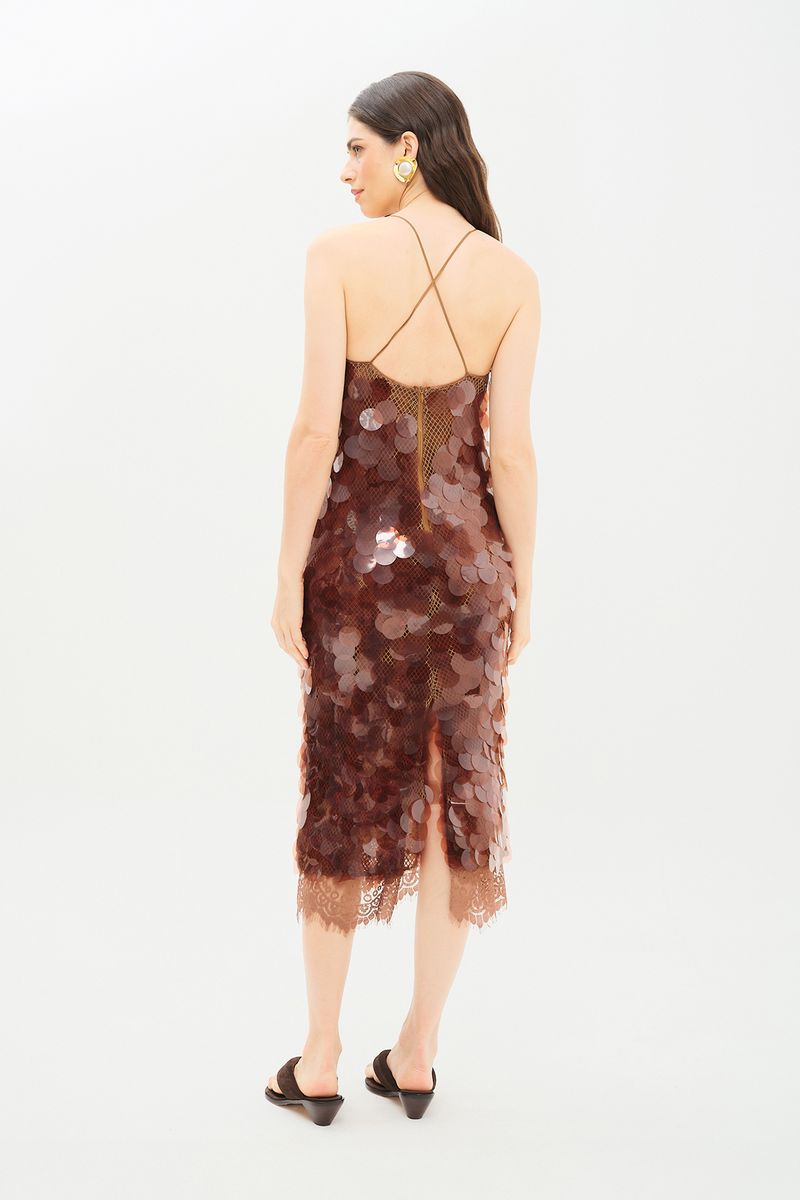 Vestido Midi Paetê Olivia Nk - MARROM