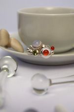 Material: Prata de Lei, peridoto, ágata vermelha, topázio azul, calcedônia e cornalina.