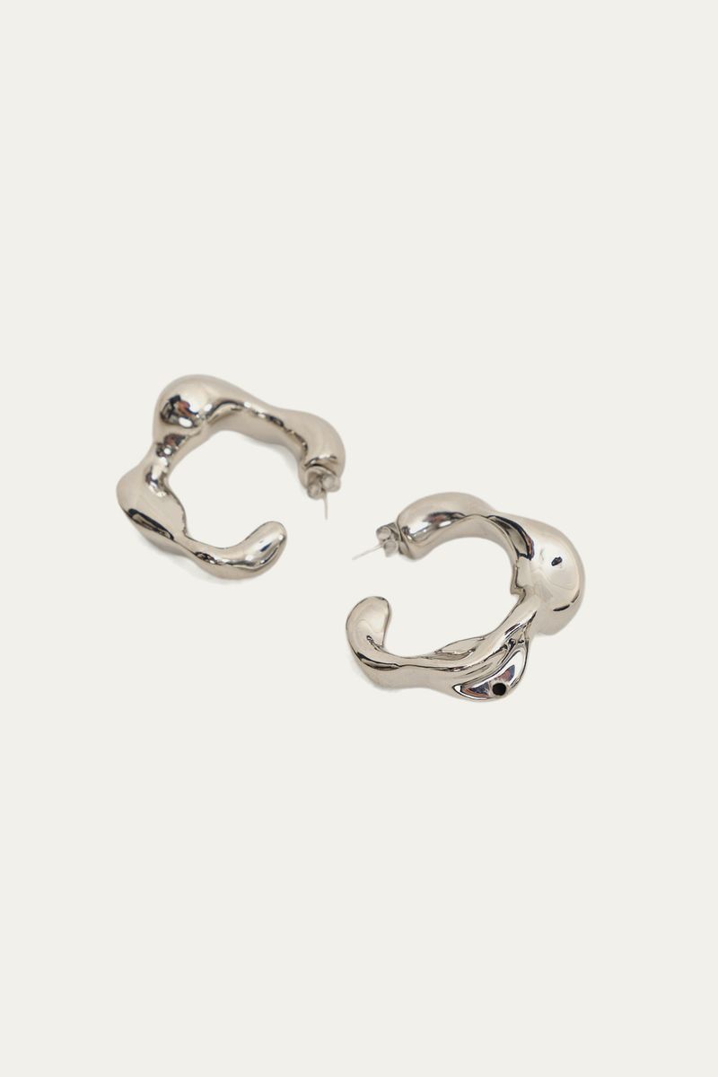 Argola Maila em metal com banho ouro 18K e ródio. Design bold com tecnologia de eletroformação, que garante volume, leveza e conforto. Fecho de pino com tarraxa para encaixe seguro o dia todo.