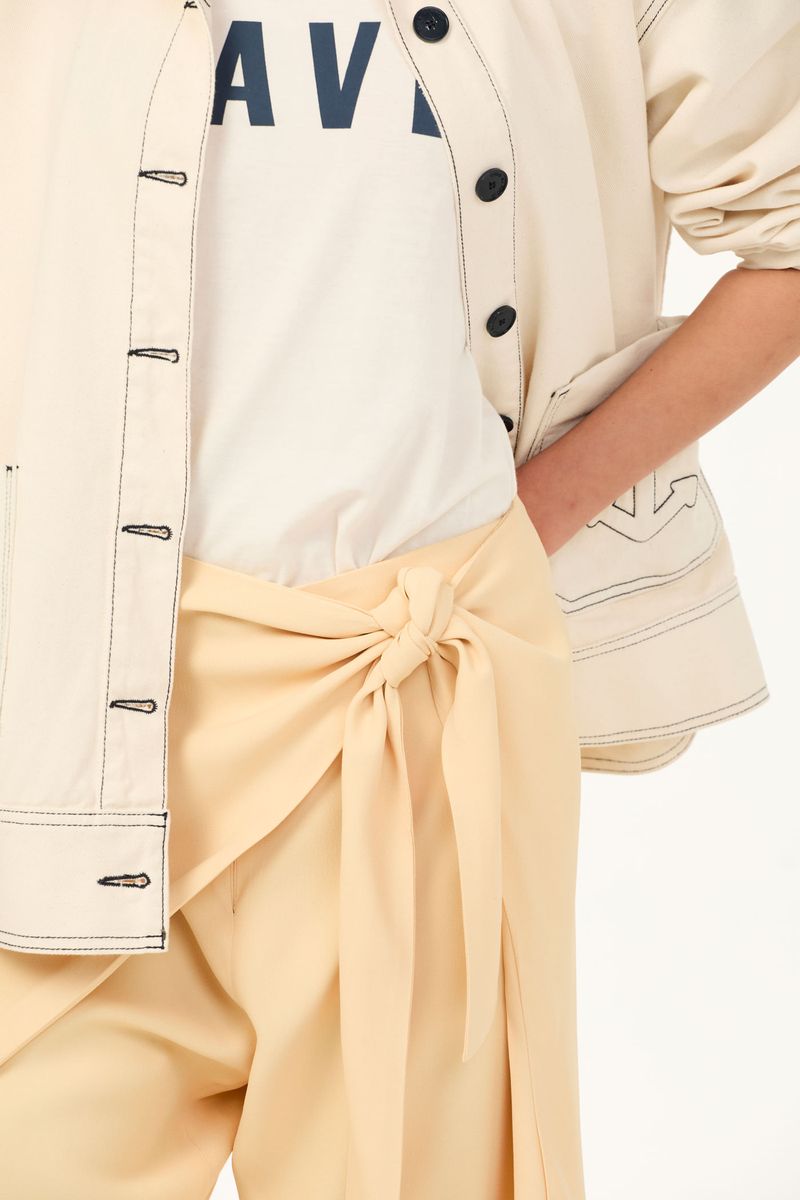 A bermuda Blair CRIS BARROS é cool e elegante. De Avalon, nosso tecido clássico, encorpado e fluido, perfeito para alfaiataria e que possui certificação FSC, com maior responsabilidade ambiental, suas fibras são feitas a partir do manejo sustentável de áreas reflorestadas. Possui shape reto, cintura logo abaixo do umbigo, fechamento por zíper invisível frontal e detalhe sobreposto com amarração na lateral esquerda.