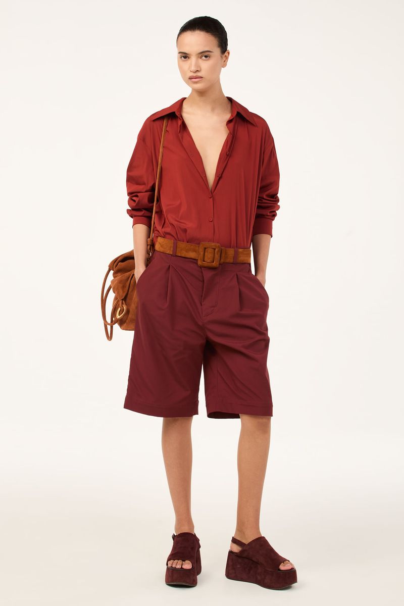 A bermuda Remi CRIS BARROS é cool e estilosa. De Amore, tecido misto de modal e elastano, com um leve brilho em sua trama. Com um ar clássico conta aspecto tecnológico. Possui shape reto, vista deslocada, cintura logo abaixo do umbigo, cós com passantes, bolsos funcionais laterais e posteriores de vivo e fechamento por botão forrado.