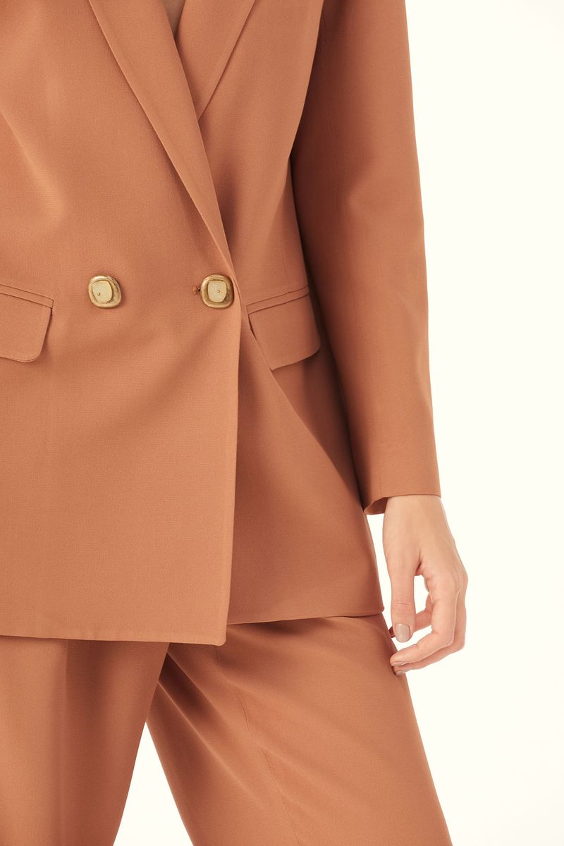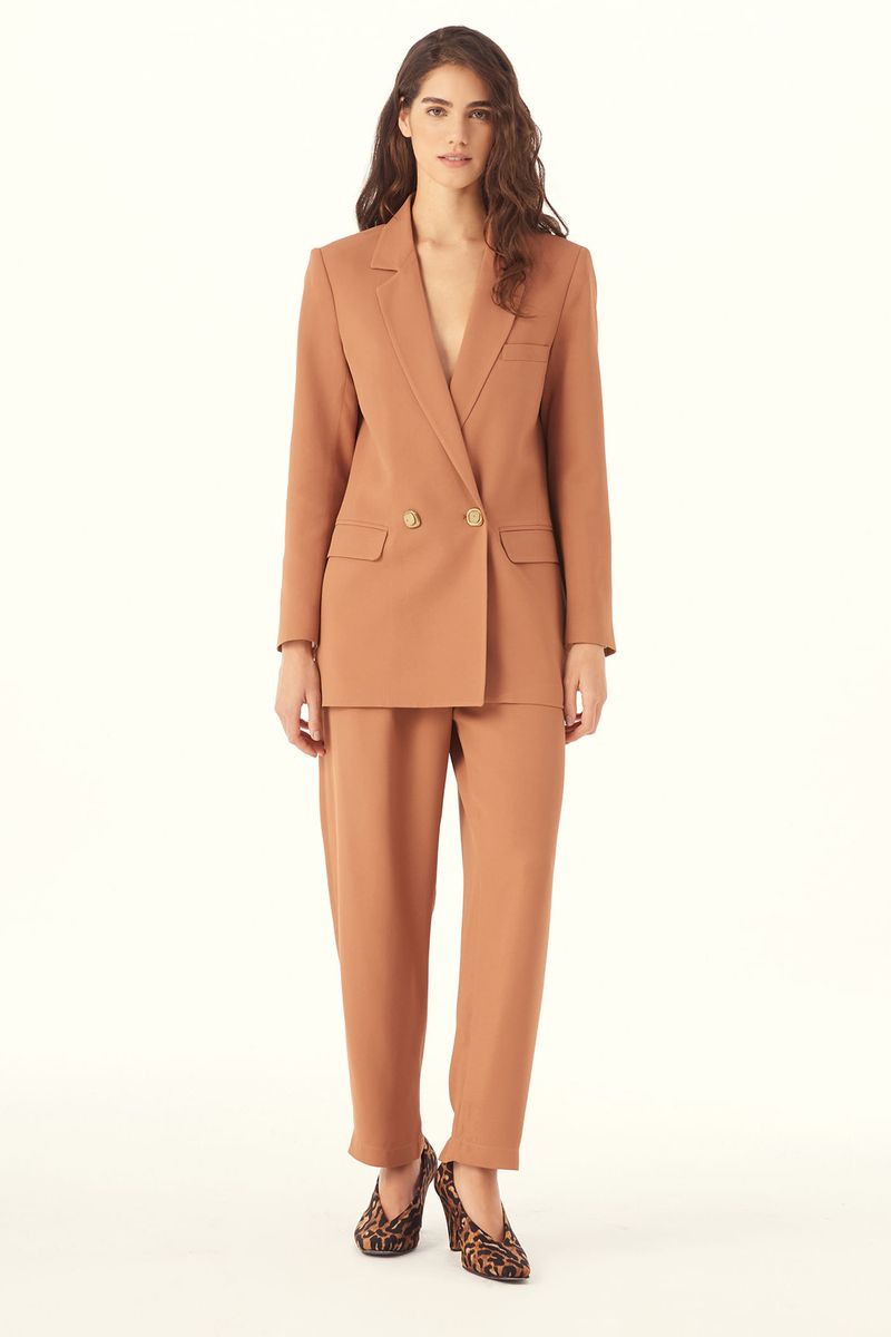 O Blazer Adagio traduz a alfaiataria contemporânea em uma leitura precisa, onde presença e equilíbrio se encontram. Confeccionado em Avalon, com maior responsabilidade ambiental, suas fibras são feitas a partir do manejo sustentável de áreas reflorestadas. O transpasse duplo com lapelas e a aplicação de dois botões diferenciados definem a frente com rigor, enquanto o caimento reto e o comprimento médio estruturam a silhueta e a abertura traseira finaliza com movimento e assinatura CRIS BARROS. Con precisione, ma con anima.