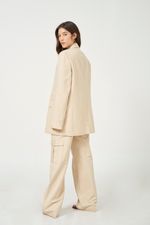Blazer listrado em tecido com toque de algodão.