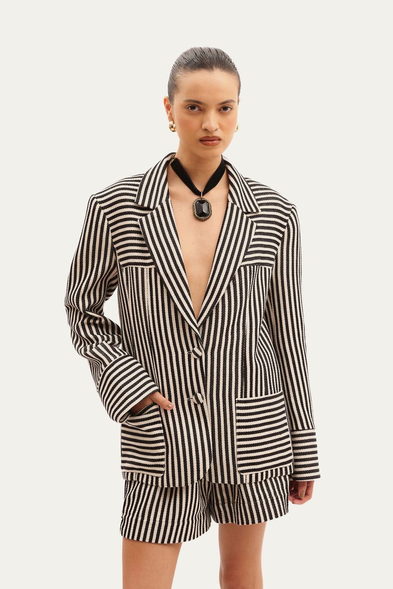 Blazer Roberto Listras Preto E Branco Le Shay - Preto E Branco