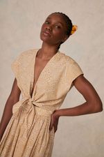 Confeccionada em algodão puro, a blusa Gaze Labirinto de Paula Raia oferece uma experiência de toque suave e fresco. Sua silhueta é definida pela modelagem cropped e pelas mangas curtas, elementos que conferem um ar contemporâneo e descomplicado. A estampa geométrica sutil e o fechamento em amarração adicionam um detalhe discreto, mas distintivo.