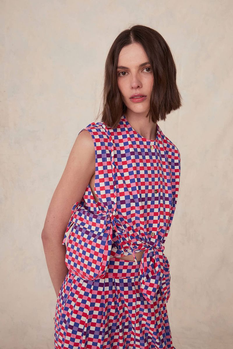 A Blusa Gelato Picnic Paula Raia revela-se como uma peça essencial de elegância sutil. Confeccionada em um tecido de notável leveza, esta regata distingue-se pela sua estampa quadriculada e uma modelagem reta que favorece o caimento.