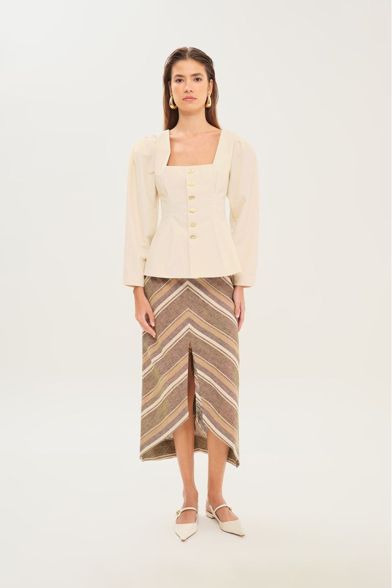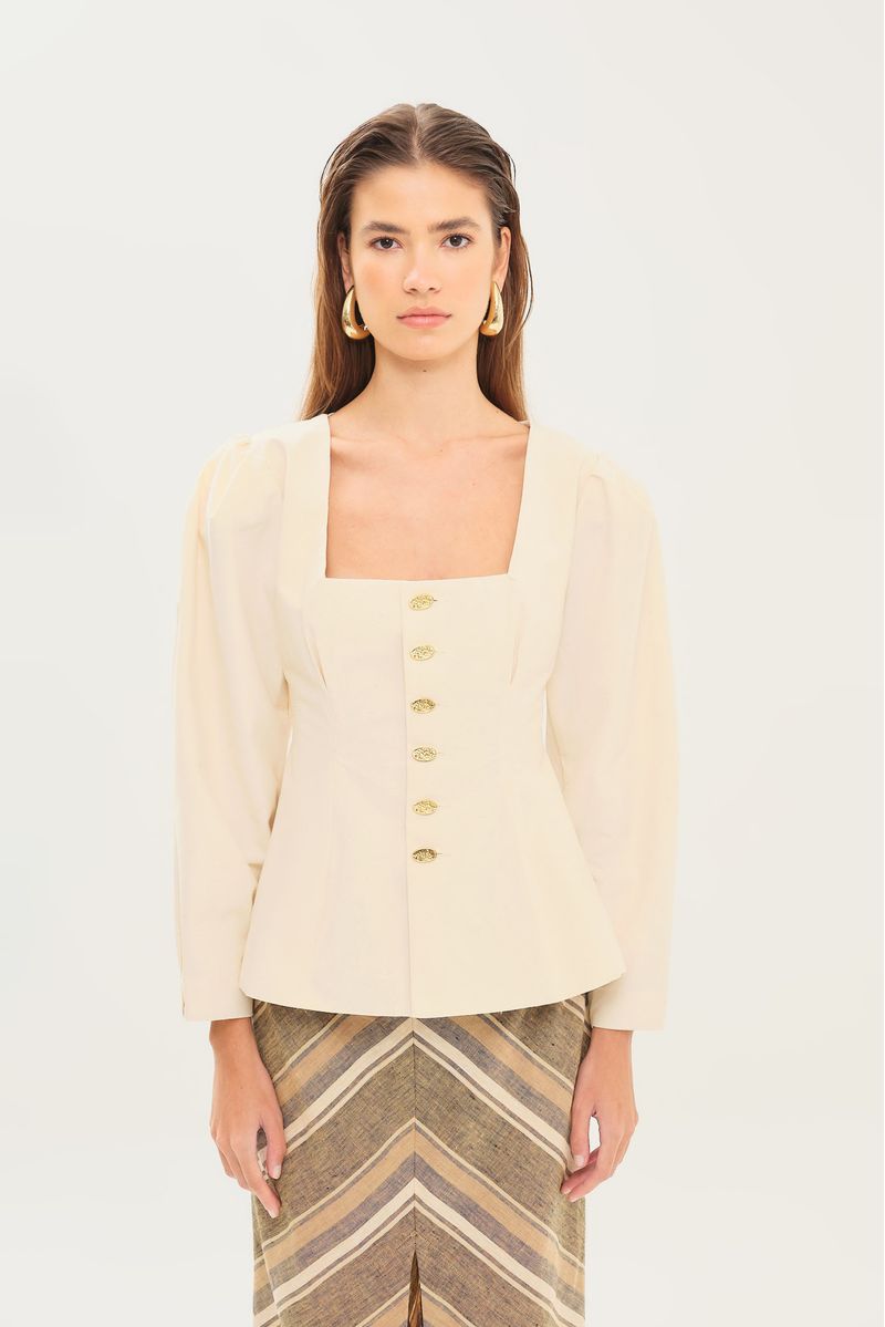 Blusa em tecido encorpado.