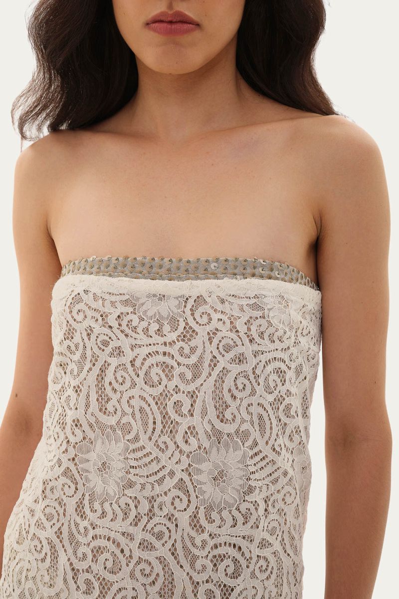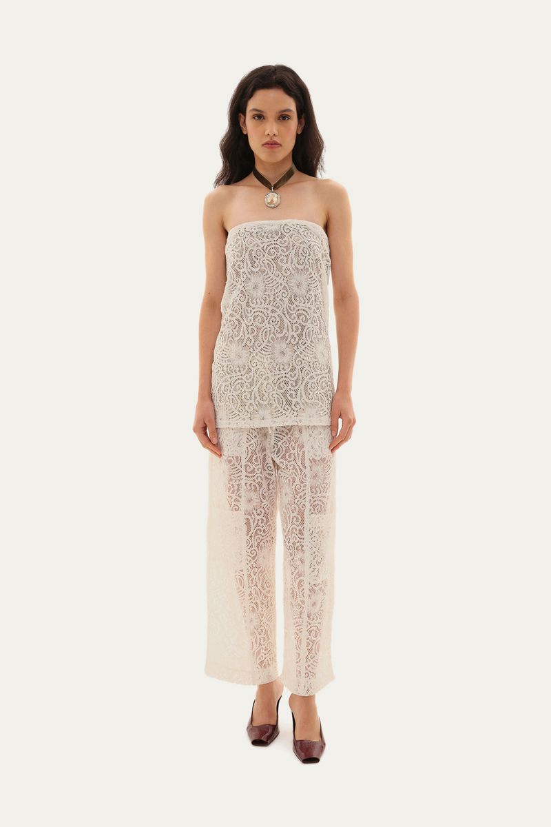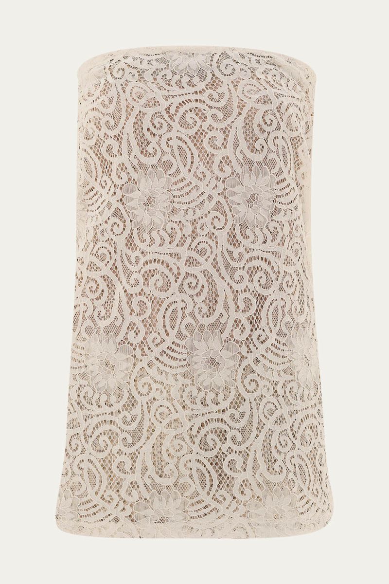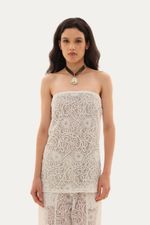 A Blusa Lupita de All Most Vintage, confeccionada em delicada renda com padronagem floral, é uma peça que exala sofisticação. Com modelagem slim alongada e um design tomara-que-caia, apresenta um elegante decote reto, garantindo um visual deslumbrante.