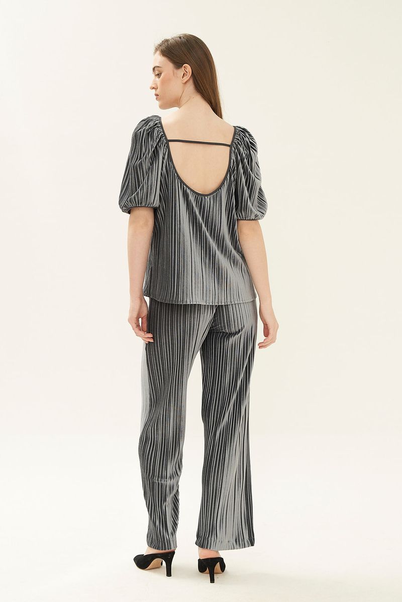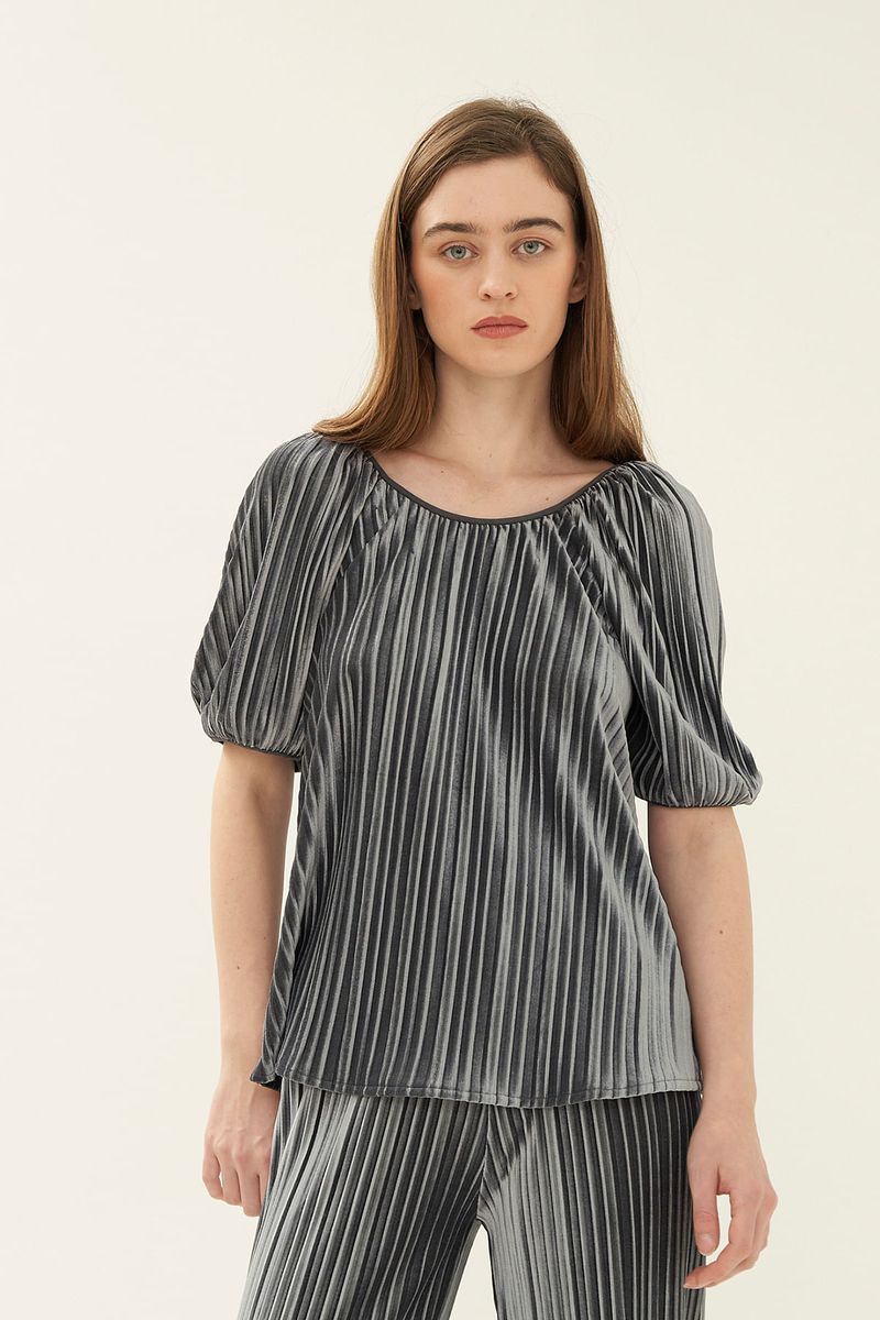 Blusa Manga Curta Plissada Missinclof - PRATA