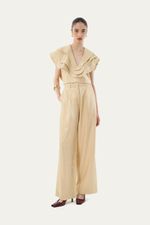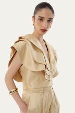 A Blusa Pétalas Cetim Aluf, uma peça que se distingue pela sua delicadeza e fluidez, é habilmente confeccionada em viscose para um toque suave e um caimento impecável. O seu design singular é realçado pelas camadas sobrepostas que adornam o decote, evocando a leveza de pétalas em movimento e revelando uma estética orgânica e tridimensional. Um discreto fechamento lateral em zíper de metal assegura um ajuste refinado e confortável.