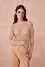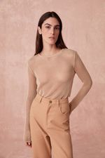 Confeccionada com a delicadeza do tricot em viscose e poliamida, esta blusa second skin envolve o corpo com um caimento impecável e um conforto sutil. Seu design atemporal, marcado pela gola redonda e mangas longas, confere uma versatilidade inerente, adaptando-se com graciosidade a diversas ocasiões.