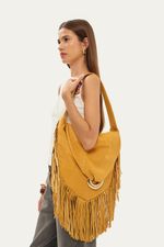 A Bolsa Baguete Tropezina Franjas, confeccionada em couro de alta qualidade, revela um design refinado que harmoniza sofisticação e uma sensibilidade contemporânea. Sua silhueta clássica é realçada por franjas delicadas, que introduzem um movimento sutil e um toque de singularidade à peça.