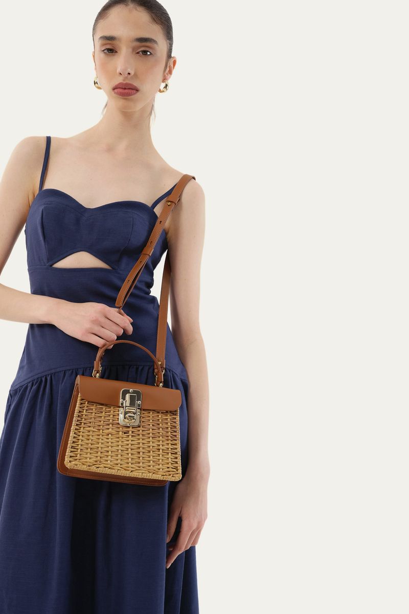 Bolsa em junco natural e couro