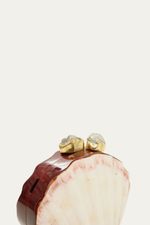A Bolsa Concha Polinésia em tom off white é uma peça singular, confeccionada com concha natural e detalhes em madeira, que evoca a beleza orgânica e a sofisticação discreta. Este acessório mini, adornado com pedras naturais, reflete um design exclusivo da Empório MP.