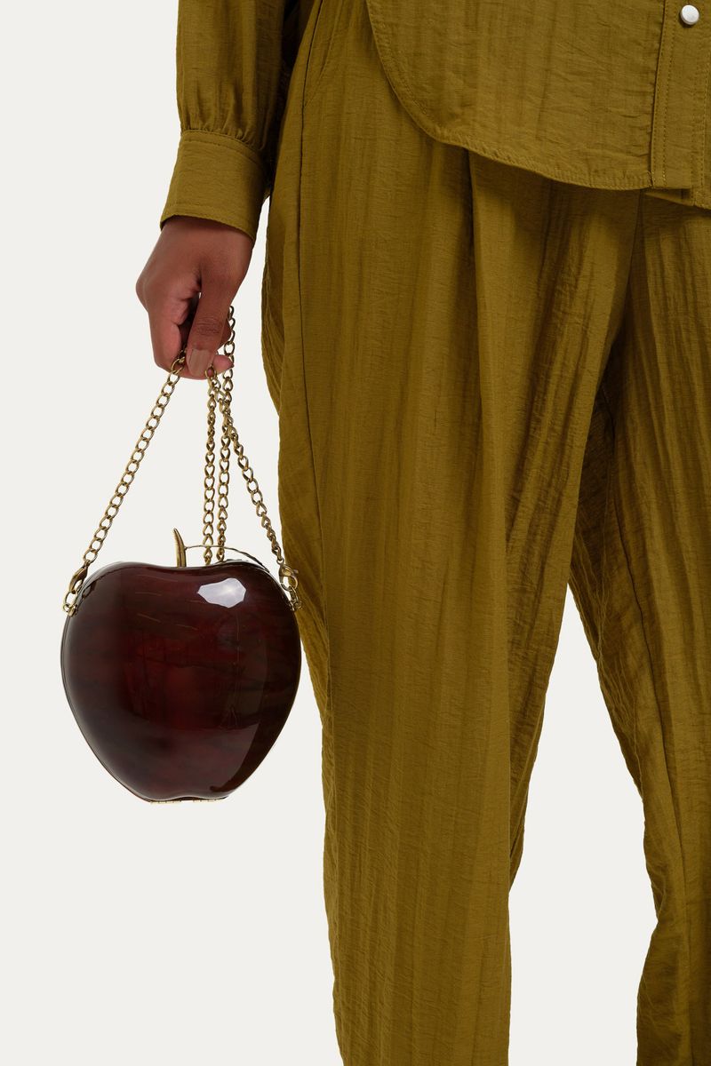 A Bolsa Pomme Framed surge como um acessório de distinção, onde a arte do design encontra a funcionalidade. Confeccionada em acrílico, sua estrutura singular assume a forma delicada de uma maçã, conferindo um charme inconfundível. Este modelo estruturado é complementado por uma alça de ombro removível em corrente, oferecendo versatilidade no uso, e um fechamento magnético que assegura praticidade com um toque de discrição.