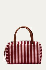 Bolsa feita à mão em lona com acabamento em couro floater. Possui alça tiracolo regulável e forro interno