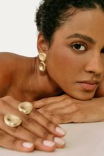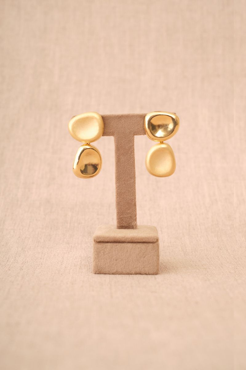 Brinco produzido em metal certificado livre de níquel, chumbo e cádmio com banho de ouro 18K. Finalização em polimento fosco e brilhante, propondo um mix de texturas.