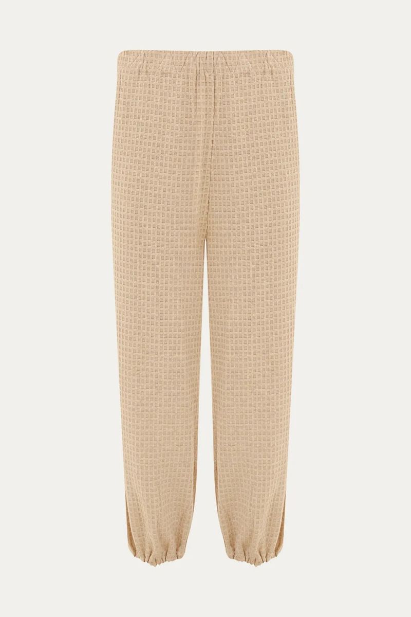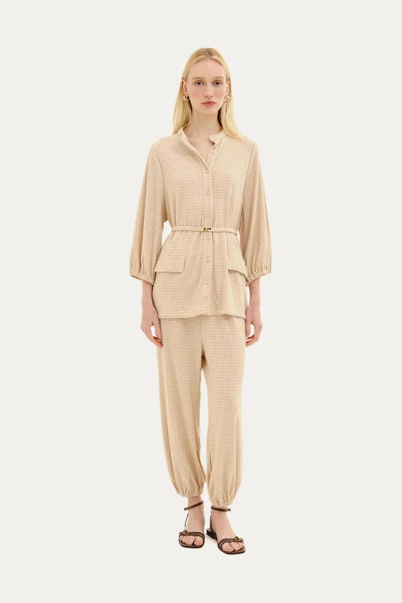 Calça longa em tecido texturizado