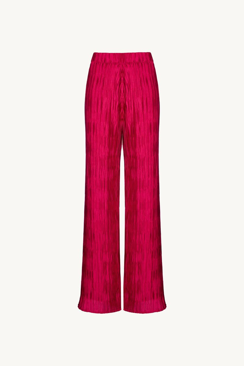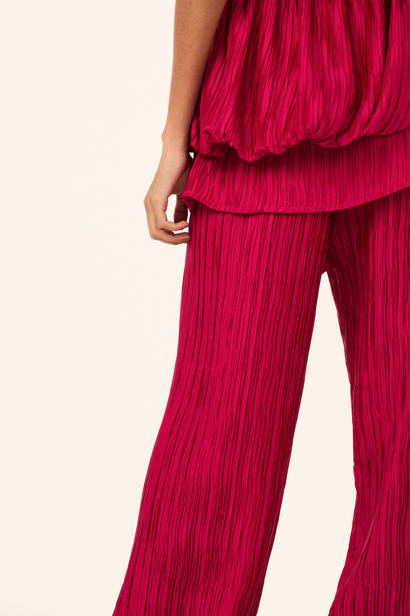 A calca Amalia CRIS BARROS é cool e super comfy. De Amalia, tecido texturizado levemente acetinado com plissados irregulares.Possui shape reto, cintura alta, cós com elástico e comprimento longo salto.