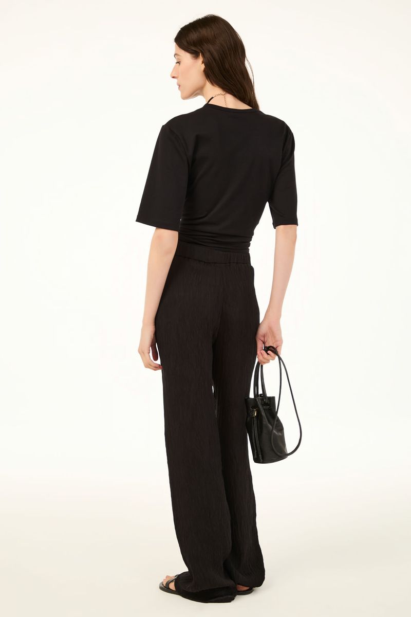 A calca Anivia CRIS BARROS é fresh e estilosa. De Tunisia, tecido misto com toque leve, brilho e caimento perfeito.calça em tunisia, nosso novo tecido plissado. Possui shape reto, cintura alta, cós com elástico, comprimento longo salto e fechamento por zíper lateral invisível.