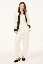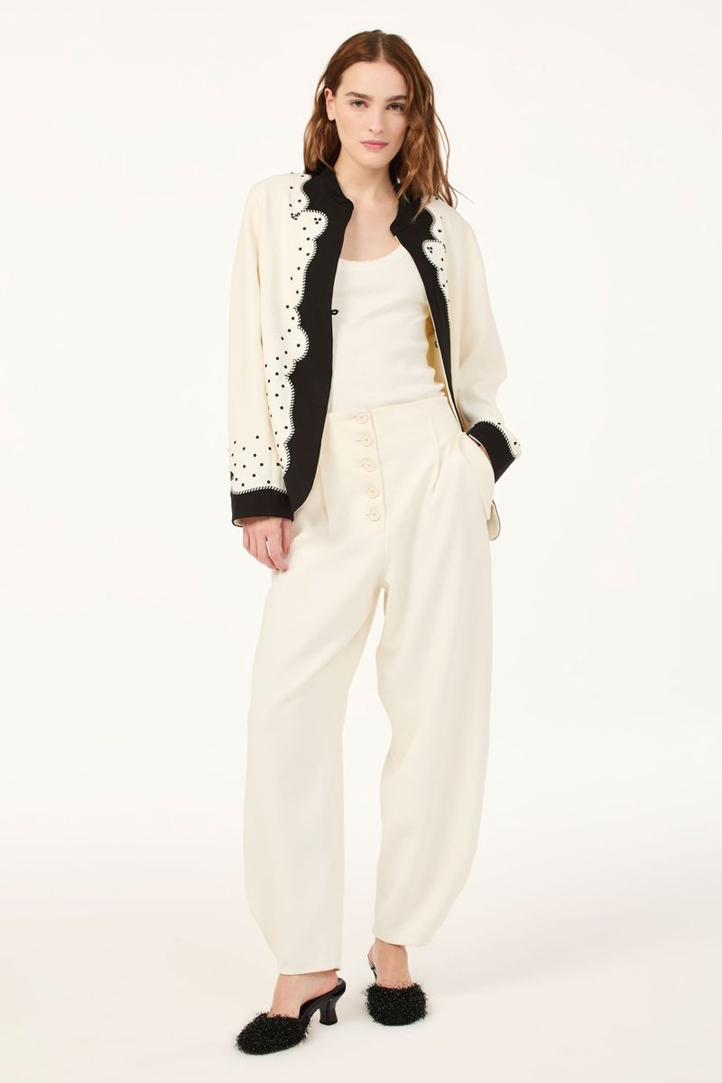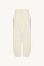 A calca Balsamo CRIS BARROS é estilosa e atemporal. De Avalon, nosso tecido clássico, encorpado e fluido, perfeito para alfaiataria e que possui certificação FSC, com maior responsabilidade ambiental, suas fibras são feitas a partir do manejo sustentável de áreas reflorestadas.calça em avalon, nosso tecido de crepe. Possui shape abaulado, cintura alta, bolsos laterais funcionais com lapela, e de vivo posteriores, fechamento por botões esmaltados, fivela nas costas para melhor ajuste e comprimento no ossinho.
