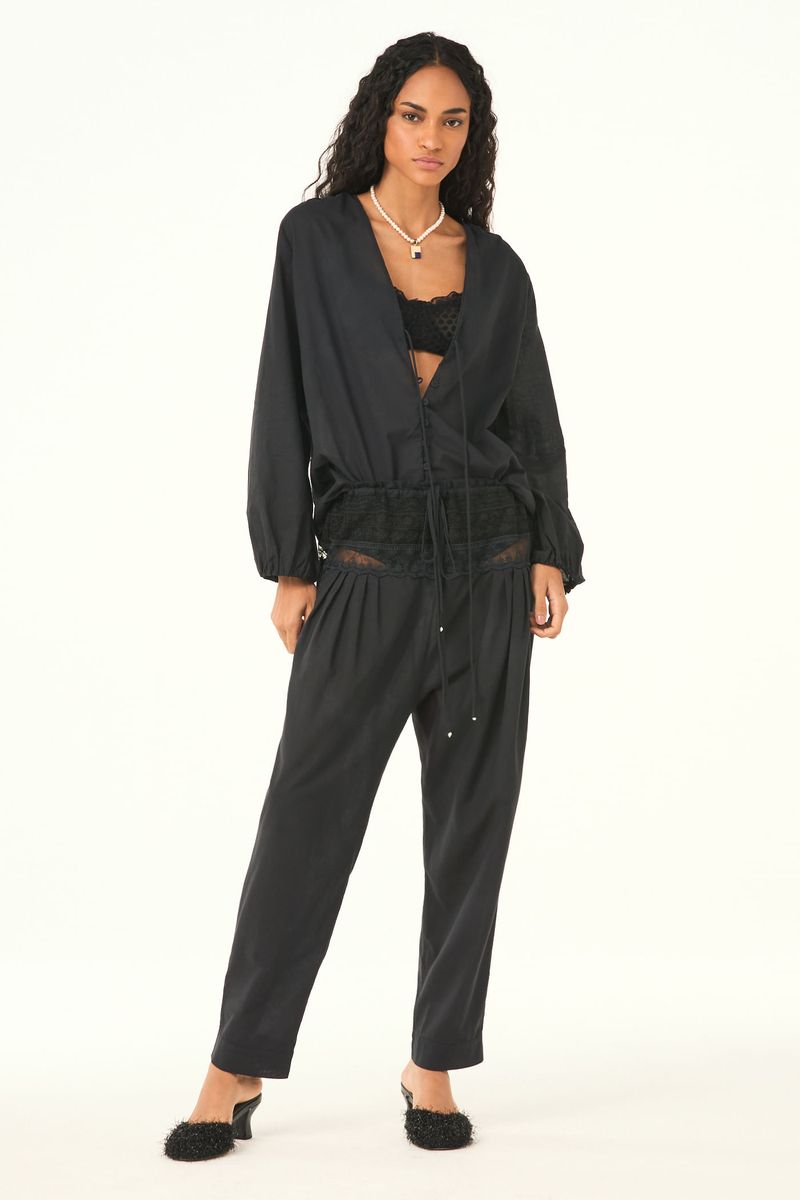 A calca Botanic CRIS BARROS é delicada e feminina. De Bartô, algodão 100%, possui fibras naturais e biodegradáveis, tratado com produtos certificados OEKO-TEX , inofensivos para as pessoas e o meio ambiente. Possui shape abaulado, cintura logo abaixo do umbigo, pala de entremeios, rolotê com pérola para amarração na cintura, comprimento no ossinho e fechamento por zíper lateral invisível. Acompanha hot pants.