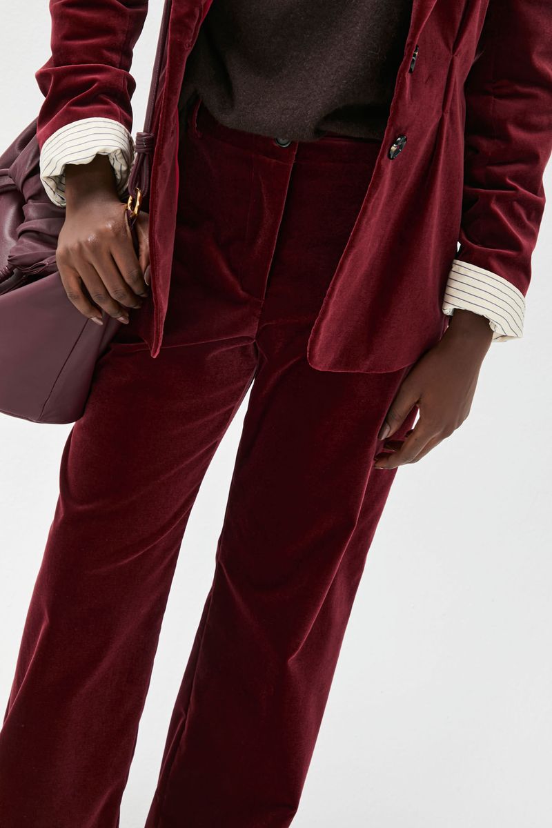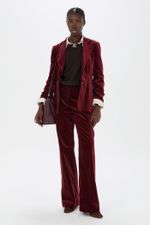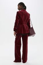 A calca Bueno CRIS BARROS é elegante e estilosa. De Karim, veludo de algodão com elastano e leve brilho. Possui shape reto, cintura logo abaixo do umbigo, cós com passantes, bolsos funcionais laterais e posteriores, fechamento por zíper de braguilha e botão jóia preto rajado com design exclusivo, desenvolvido em nosso atelier e comprimento longo salto.