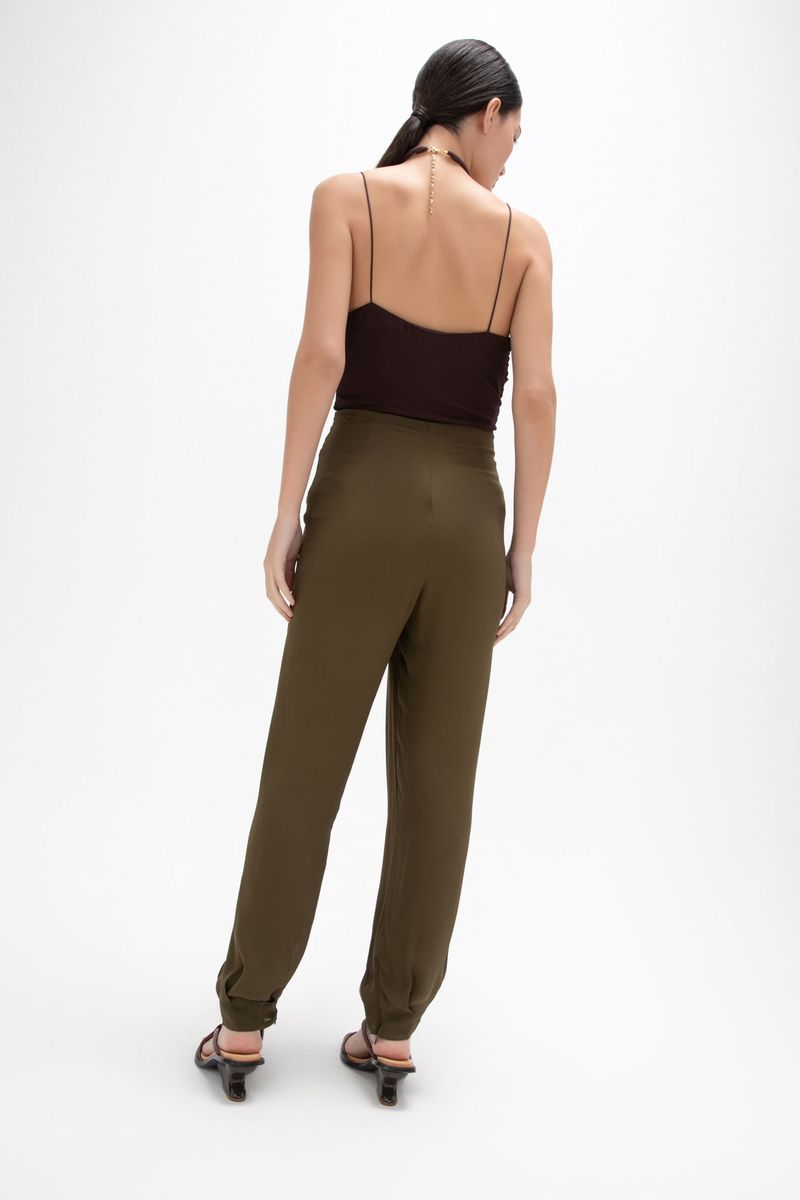 A calca Cairo CRIS BARROS é easy chic. De Virgo, nossa viscose creponada, fluida e com leve transparência. Possui shape aladin, cintura alta, pregas, comprimento no ossinho e fechamento por zíper lateral invisível e zíper lateral na barra para facilitar a colocação dos pés.