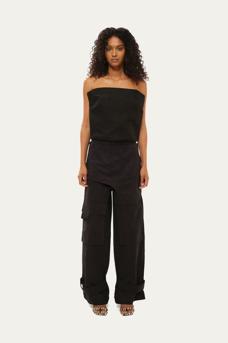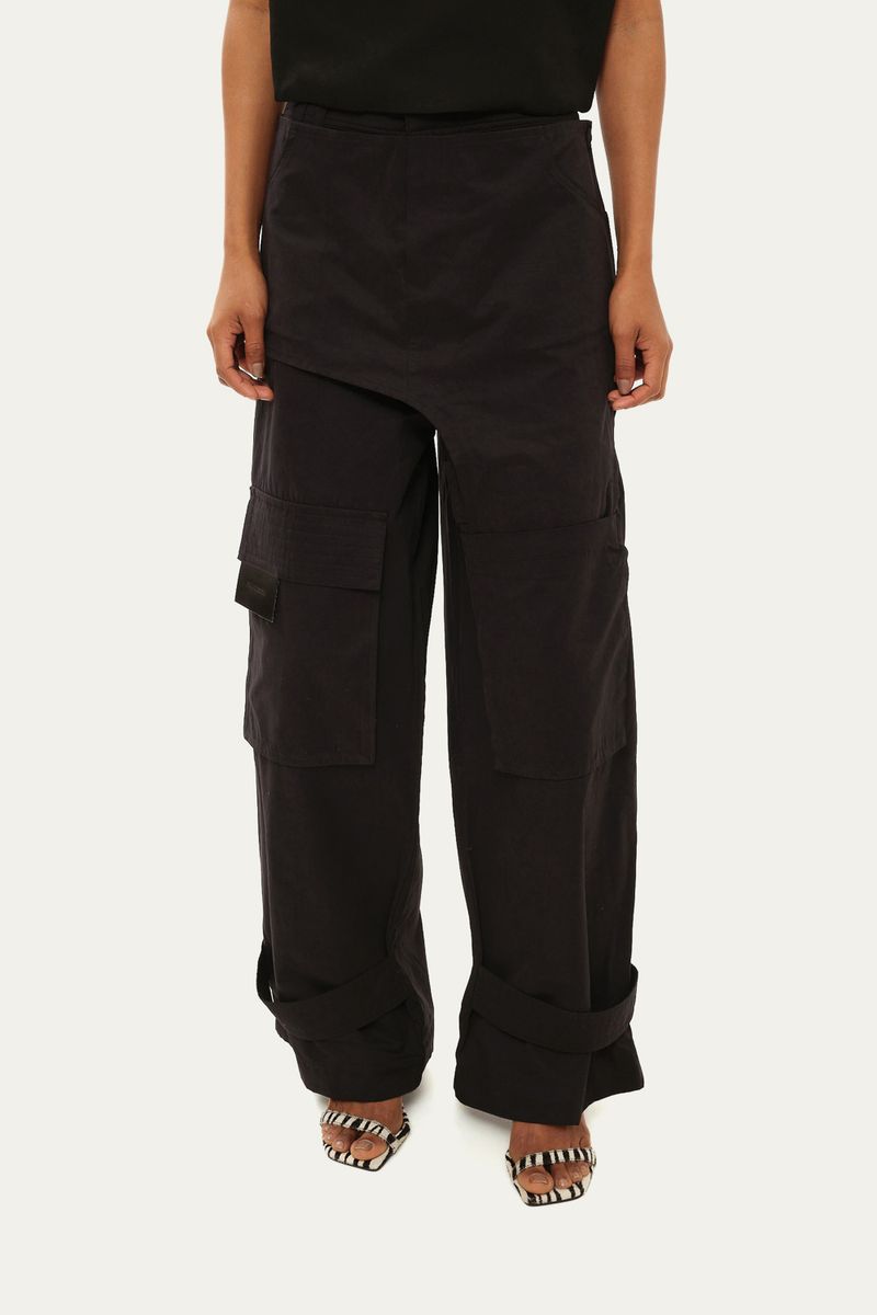 A Calça Cargo Éter em tricoline encorpado, uma sofisticada mistura de algodão, poliéster e poliamida, redefine o estilo utilitário com sua modelagem moderna e detalhes funcionais. Apresenta uma cintura com pala assimétrica removível, complementada por bolsos estratégicos e uma barra ajustável com velcro, oferecendo versatilidade e um toque contemporâneo ao seu guarda-roupa.