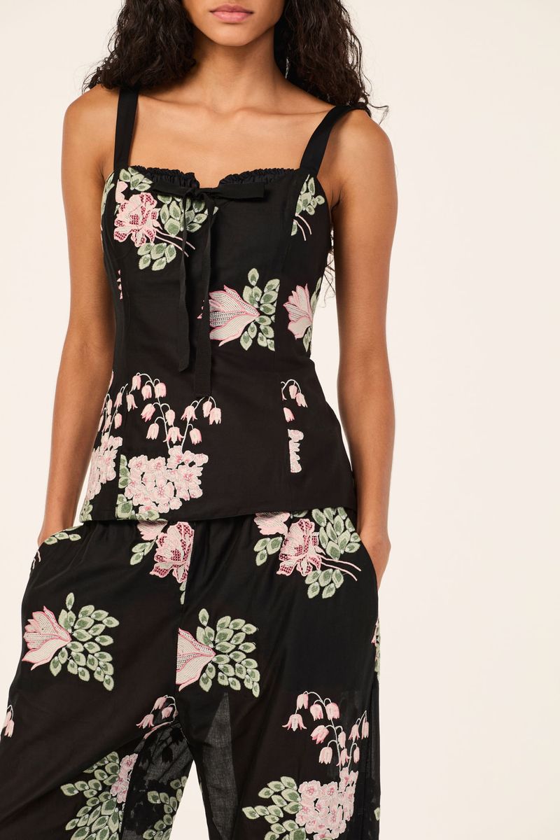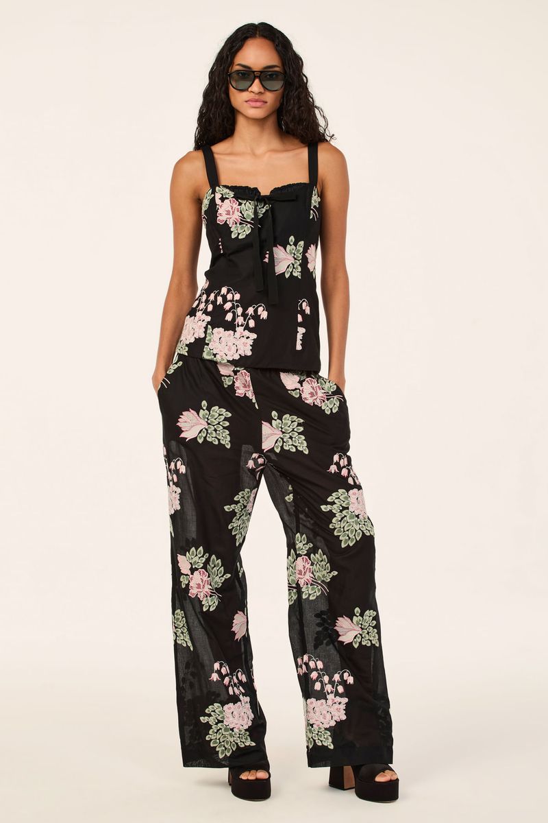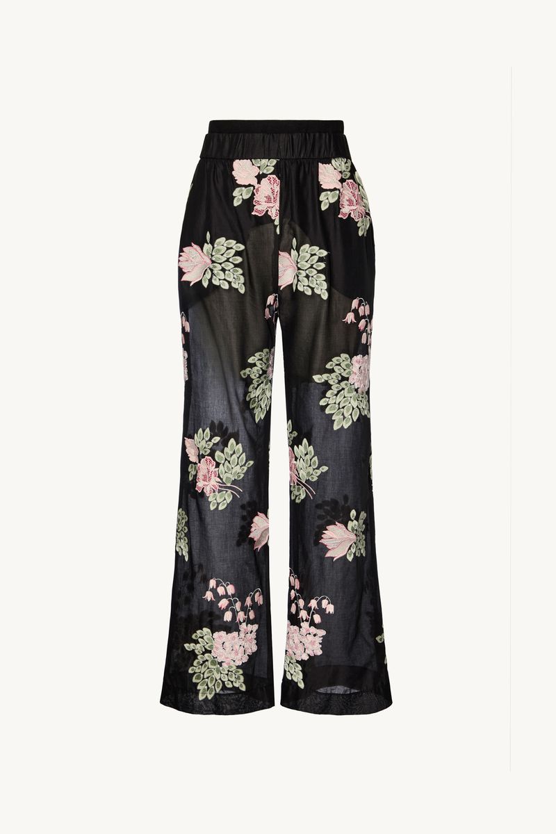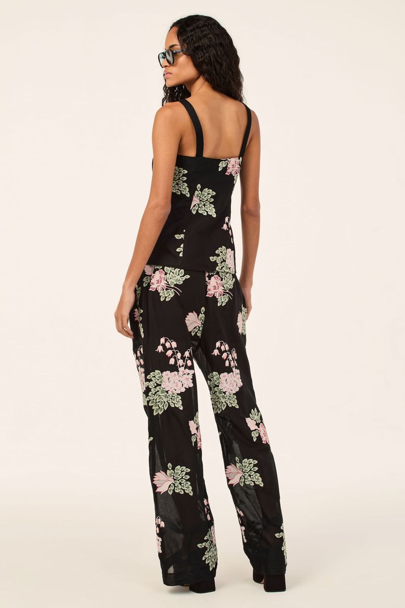 A calca Cora CRIS BARROS é elegante e estiloso. De Cora, voil 100% algodão com buquês de flores bordadas em padrões diferentes, trazendo um efeito de texturizado para o desenho das flores. Possu shape reta, cintura logo abaixo do umbigo, cós drapeado, bolsos laterais funcionais, comprimento longo salto e fechamento por zíper lateral de metal com puxador.