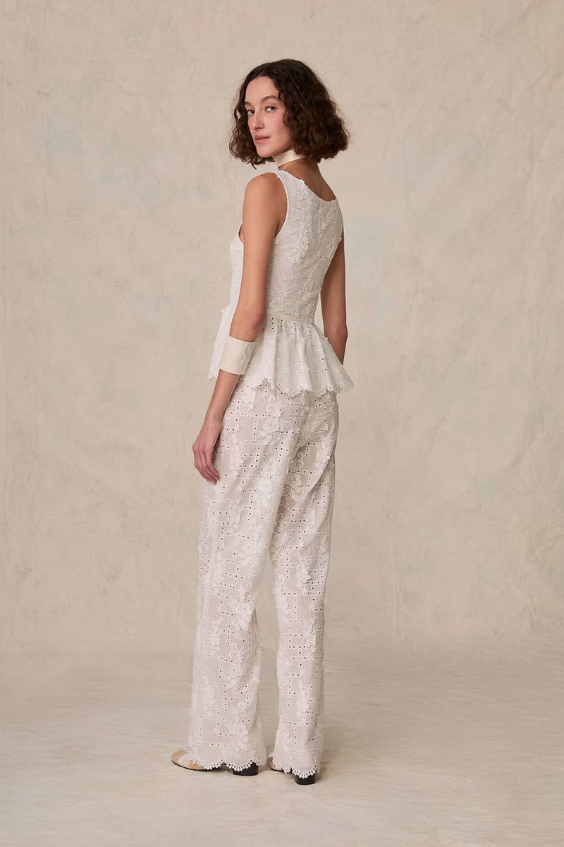 Confeccionada em uma base de algodão puro, enriquecida por um delicado bordado, a Calça Flare Cotton Fleur Paula Raia proporciona um caimento sublime e confortável. Com sua silhueta flare e cintura elevada, esta peça confere um visual de refinada elegância e um toque delicado à pele, ideal para quem valoriza o bem-estar e a distinção.