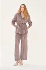Estampa em listras verticais.