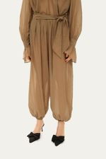 A Calça Gaelli redefine o estilo jogger com sua modelagem ampla e volumosa, confeccionada em uma mistura de algodão e nylon que oferece leve transparência e toque suave. Com elásticos na barra para acentuar o volume e um cós com elástico e franzidos, esta peça proporciona conforto e um visual moderno e descontraído.