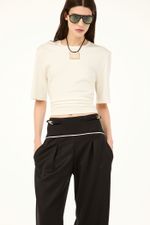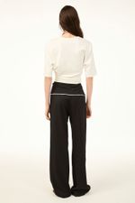 A calca Guana CRIS BARROS é cool e fashionista. De Gabardine, nossa lã fria, perfeita para alfaiataria. Possui shape reto, cintura logo abaixo do umbigo, pregas frontais, bolsos laterais e posteriores, pala dobrada com aviamento jóia, banhado de prata, design exclusivo, desenvolvido em nosso atelier, comprimento longo salto e fechamento por zíper lateral invisível.