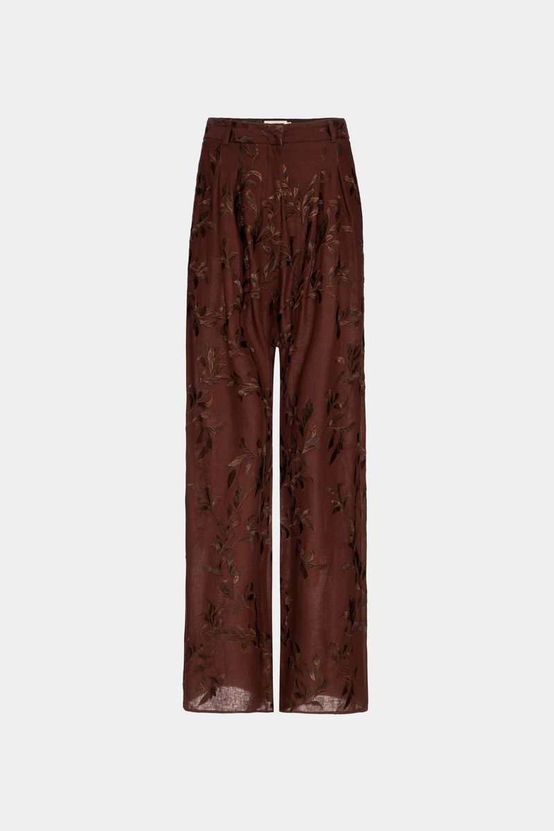 A calca Helene CRIS BARROS é elegante e fashionista. De Calma, bordado bicolor de folhagens que traz contrate entre linhas brilhantes e opacas. Possui shape sarouel, cintura logo abaixo do umbigo, cós com passantes, comprimento longo salto e fechamento por zíper de braguilha e ganchos de alfaiataria.
