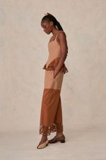 Peça de notável versatilidade, transita com fluidez de composições diurnas a eventos mais elaborados, harmonizando-se com tops ajustados ou blusas fluidas para um visual equilibrado e refinado.