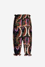 A calça Nola CRIS BARROS mini bebê é fashionista. De Lavinia, tecido 100% algodão, leve e versátil para deixar as pequenas livres e confortáveis, traz estampa exclusiva, que mistura arabescos e florais Orane, desenvolvida em nosso atelier. Possui modelagem saruel com elástico na cintura e na barra.