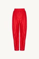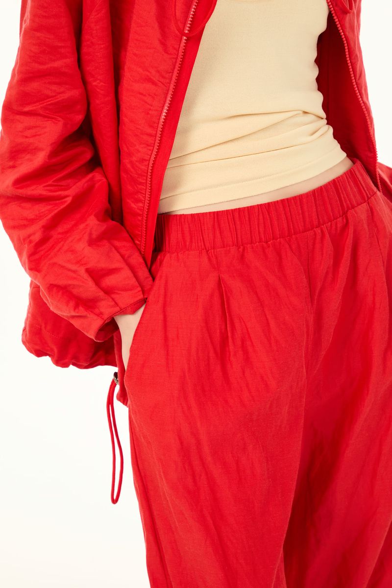 O calca Orla CRIS BARROS é comfy e cool. De Marshmallow, viscose proveniente de manejo florestal sustentável com certificação FSC e tratada com produtos certificados OEKO-TEX , inofensivos para as pessoas e o meio ambiente.calça em marshmallow, nosso tecido técnologico com aspecto amassado. Possui shape cenoura, cintura alta, cós com elástico, bolsos laterais funcionais, pregas na barra e comprimento no ossinho.