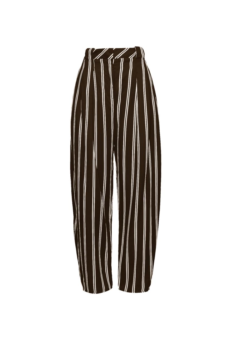 A Calça Passione traduz a alfaiataria em forma contemporânea, onde precisão e atitude caminham lado a lado. Confeccionada em Biarritz, uma reinterpretação da alfaiataria clássica e atemporal italiana, constrói presença com linhas definidas e intenção de design. A modelagem de caimento levemente afunilado traz cintura média, posicionada logo abaixo do umbigo, e comprimento no ossinho, enquanto os passantes largos criam um gesto de traços arquitetônicos ao encontrar a prega frontal; o fechamento por ganchos de alfaiataria e zíper arremata a construção com rigor e a assinatura CRIS BARROS, con precisione, ma con anima.