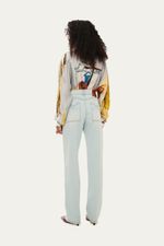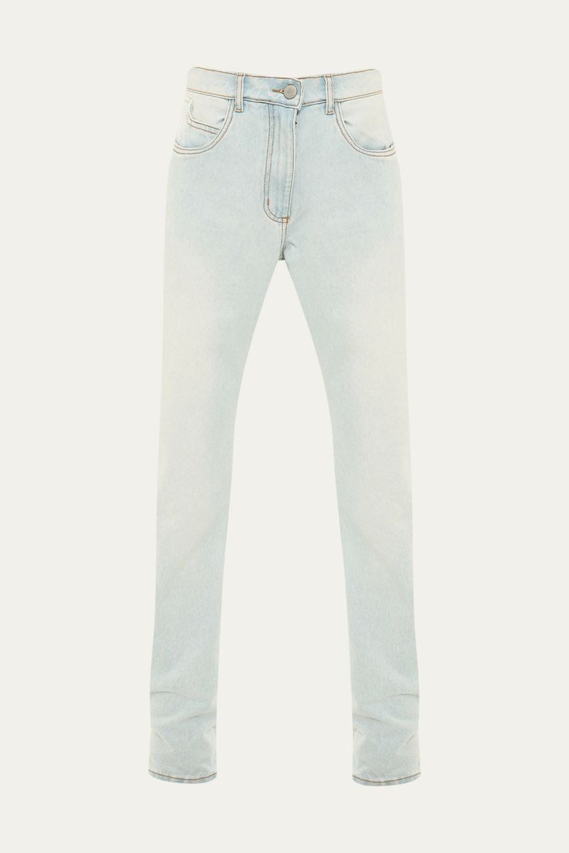 Confeccionada em tecido jeans 100% algodão, esta calça reta oferece uma modelagem clássica e atemporal. Os bolsos posteriores e laterais, com seu formato geométrico, adicionam um detalhe sutil e original. Uma peça essencial que harmoniza conforto e um toque de modernidade discreta, elevando a composição com elegância.