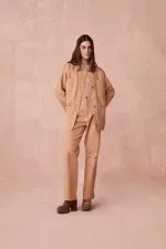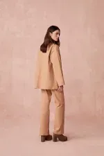 RoupasCalçasRetaCalça Reta Sarja Piquet Paula Raia - BEGE