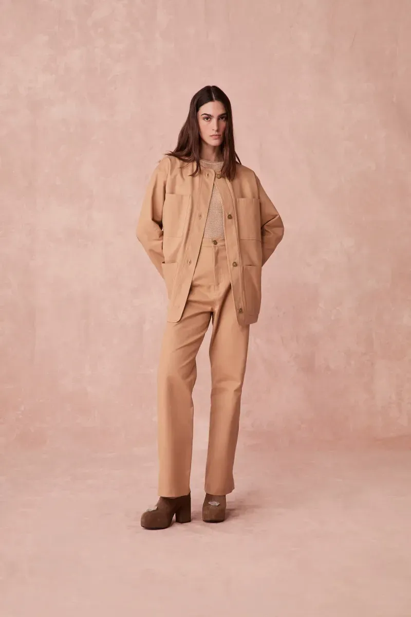 A Calça Reta Sarja Piquet Paula Raia, uma peça elaborada em sarja de algodão para um conforto superior e caimento impecável. Seu design se destaca pela modelagem reta e cintura alta, complementada por um cós com passantes e práticos bolsos, elementos que conferem sofisticação e funcionalidade ao vestuário.