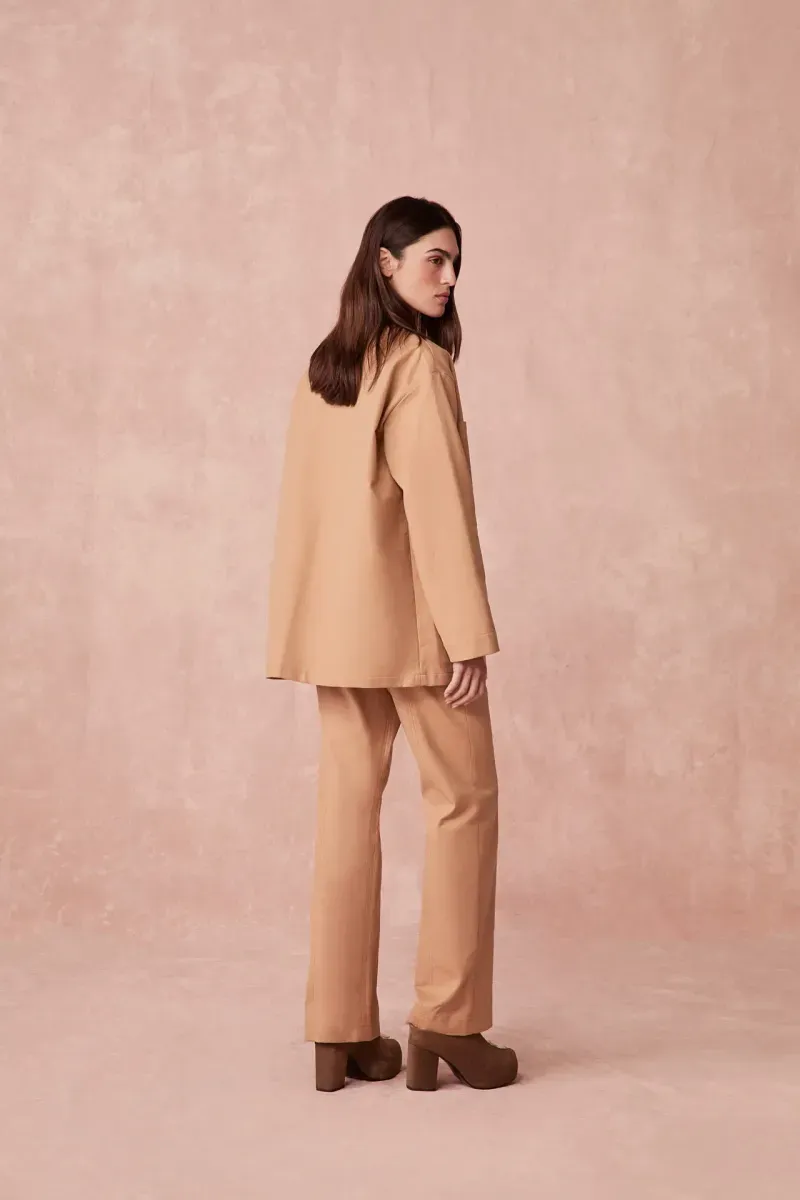Calça Reta Sarja Piquet Paula Raia - BEGE