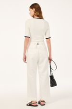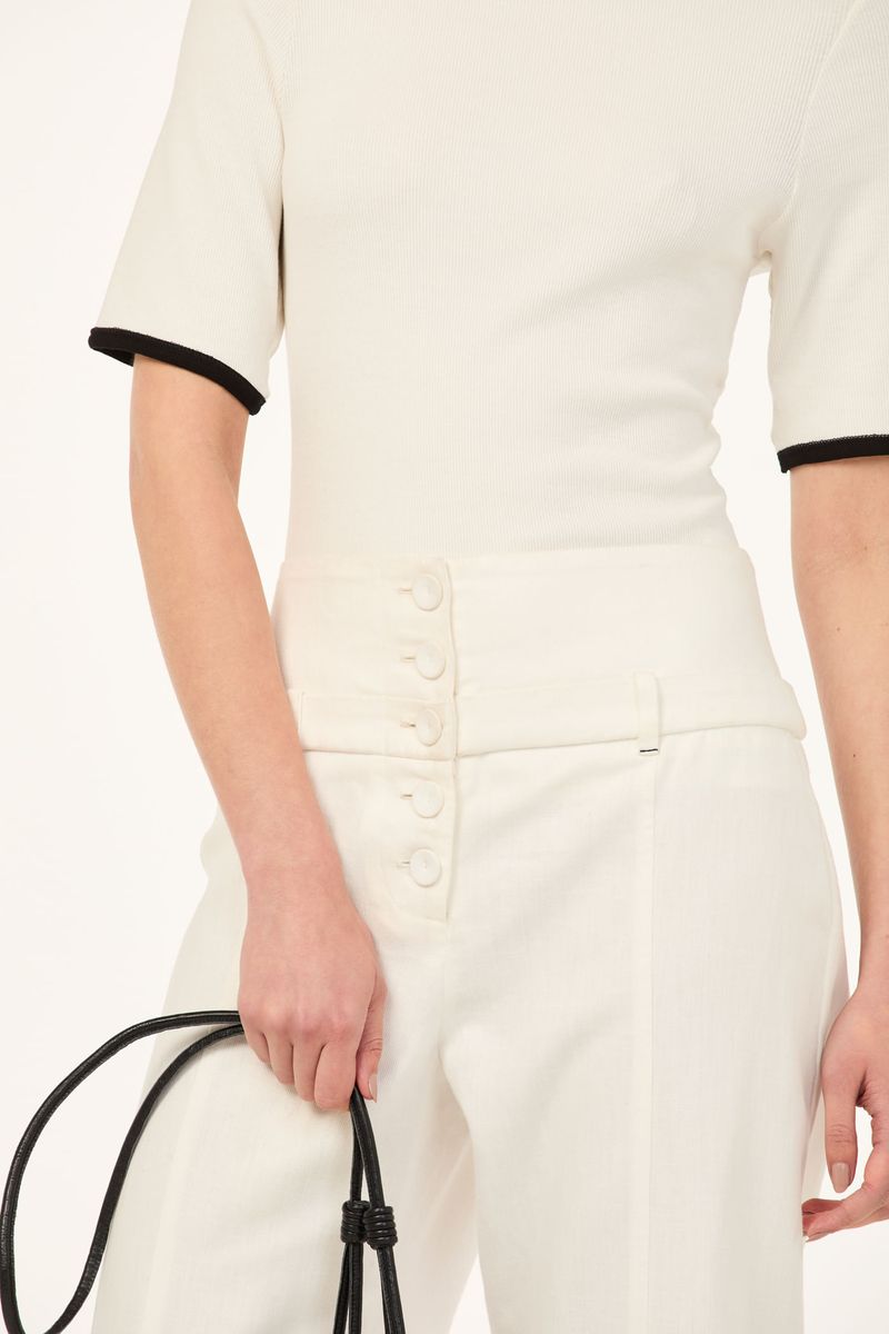 A calça Rina CRIS BARROS é fresh e estilosa. De Mia, sarja de fibras naturais, algodão e cânhamo. Possui shape reto, cintura logo abaixo do umbigo, bolsos funcionais frontais e posteriores, comprimento no ossinho e fechamento por sequencia de botões e fivela posterior.