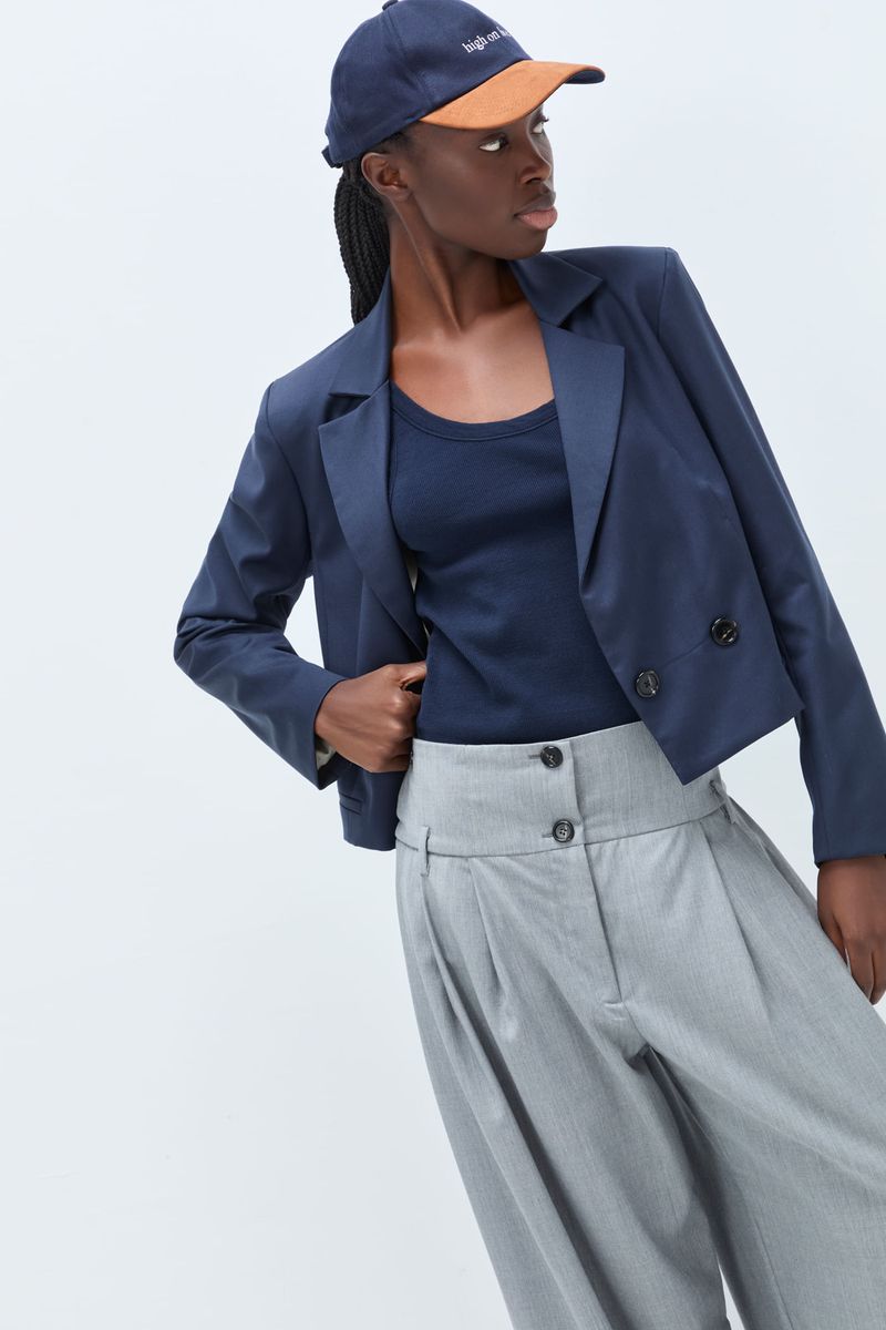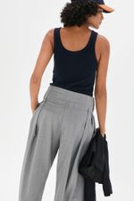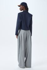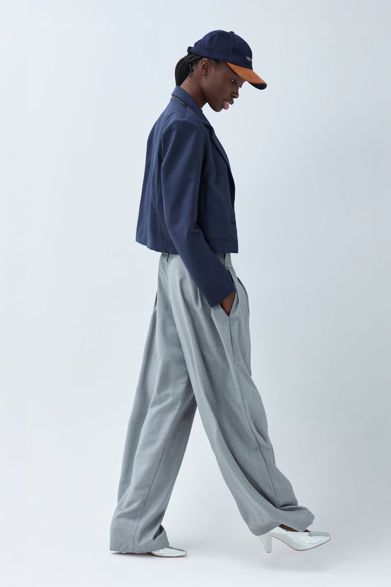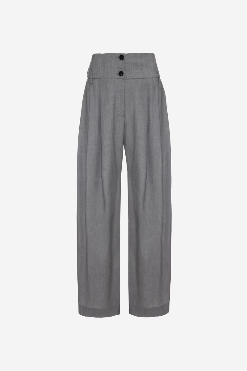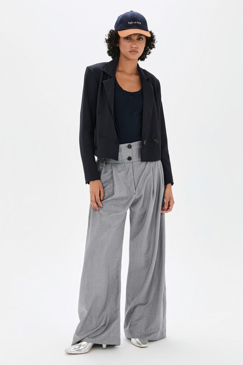 A calça Romero CRIS BARROS é cool e fashionista. De Gabardine, nossa lã fria, perfeita para alfaiataria. Possui shape amplo e pantalona, pregas frontais, pala com passantes baixos, cintura alta, comprimento longo salto e fechamento por botões na pala e zíper de braguilha.