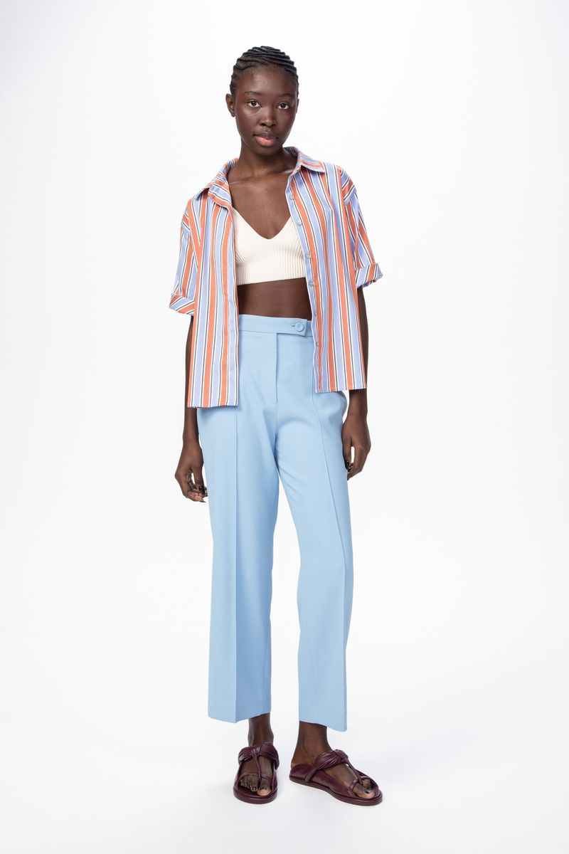 A calça Sally CRIS BARROS revisita os clássicos da alfaiataria com um toque de modernidade. De Avalon, tecido encorpado e fluido, perfeito para alfaiataria. Possui modelagem reta, vincos frontais aparentes, comprimento cropped, cintura regular, cós com passantes, bolsos laterais funcionais e fechamento frontal por abotoamento e zíper oculto.